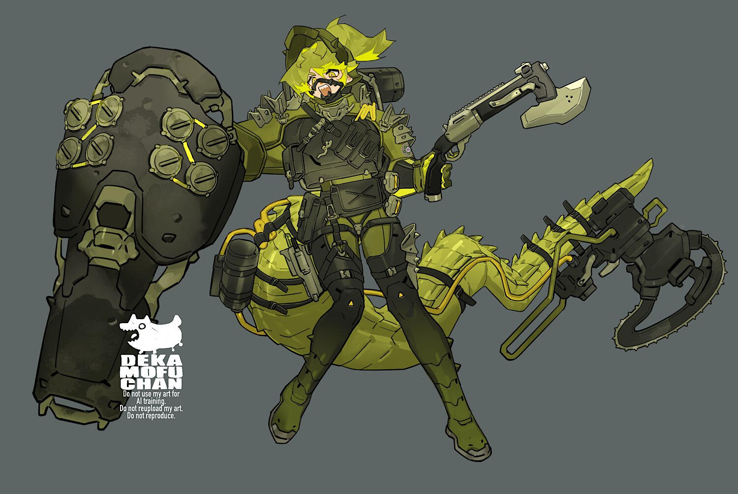 I specialize in character illustration and character design, especially of anthro (furry) and muscular body types.